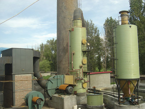 煙氣從塔底部切線方向進入玻璃鋼凈化塔除塵器主體, 自下而上與吸收液逆流接觸。煙氣在旋流板上旋激液體,把液體分散成較小的液滴,增大了傳質(zhì)效果。氣相和液相在接觸過程中, 氣相中的煙塵和二氧化硫在擴散、碰撞的作用下被捕獲截留和吸收。液滴和顆粒物又在離心力的作用下,甩向四周的薄液流邊界層而被除去。該裝置具有開孔率大、負荷高、壓降低、處理能力大、操作彈性大、不易堵塞等優(yōu)點。